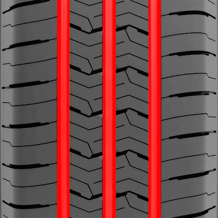 The optimal widths and arrangement of the four channel grooves guarantee outstanding performance in wet driving conditions